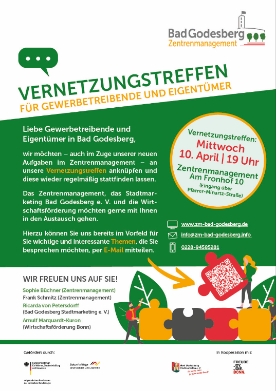Das Zentrenmanagement, das Stadtmarketing Bad Godesberg e. V. und die Wirtschaftsförderung möchten gerne mit Ihnen in den Austausch gehen.