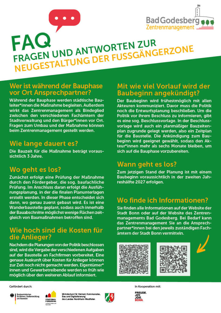 Alle Fragen und Antworten zur Neugestaltung der Fußgängerzone finden Sie auf der Website der Stadt Bonn unter FAQ oder direkt hier: