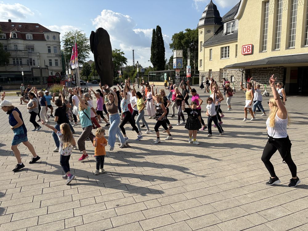 Mit einem schwungvollen Auftakt startete die Tanzreihe auf dem Bahnhofsvorplatz von Bad Godesberg. In kurzen Einheiten wurden verschieden Tanzstile vorgestellt und gemeinsam ausprobiert- mit großer Resonanz: Zwischen 40 und 100 Teilnehmende pro Abend, dazu zahlreiche Zuschauer und Passanten, die sich spontan von Musik und Bewegung mitreißen ließen. Der Bahnhofsvorplatz erwies sich dabei als idealer Ort: zentral gelegen, gut einsehbar und mit viel Raum für Begegnung. Das Format wurde zum echten Publikumsmagneten mit durchweg gutem Feedback.